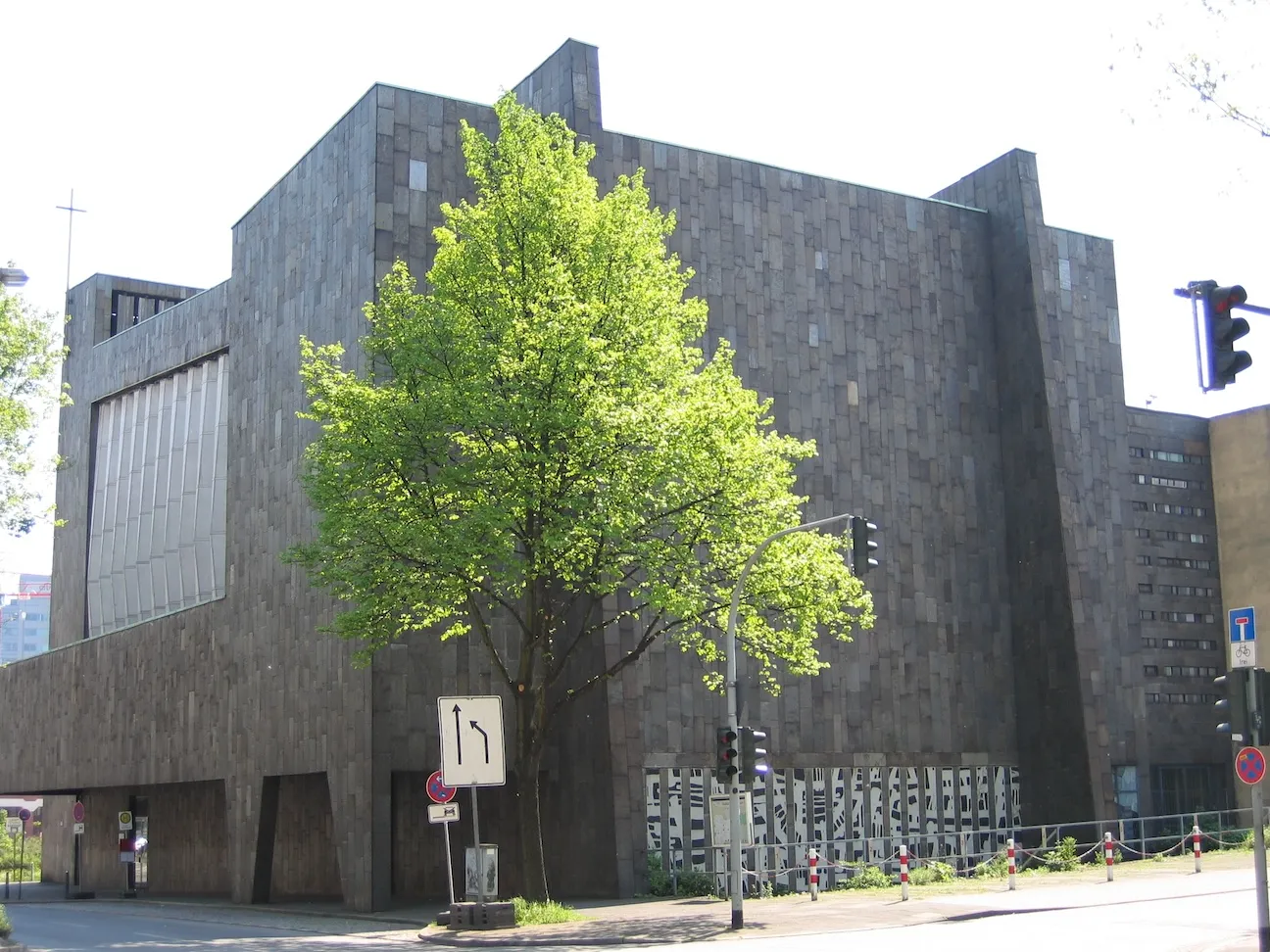 Der doppelgeschossige Stahlbetonbau wurde im Architekturstil des „Brutalismus“errichtet und steht beispielhaft für den architektonischen Zeitgeist der 1960erJahre.Die Glasfenster, der Baldachin und zahlreiche Einrichtungsgegenstände der Kirche stammen aus dem Pavillon des Vatikans auf der Brüsseler Weltausstellung von 1958.
